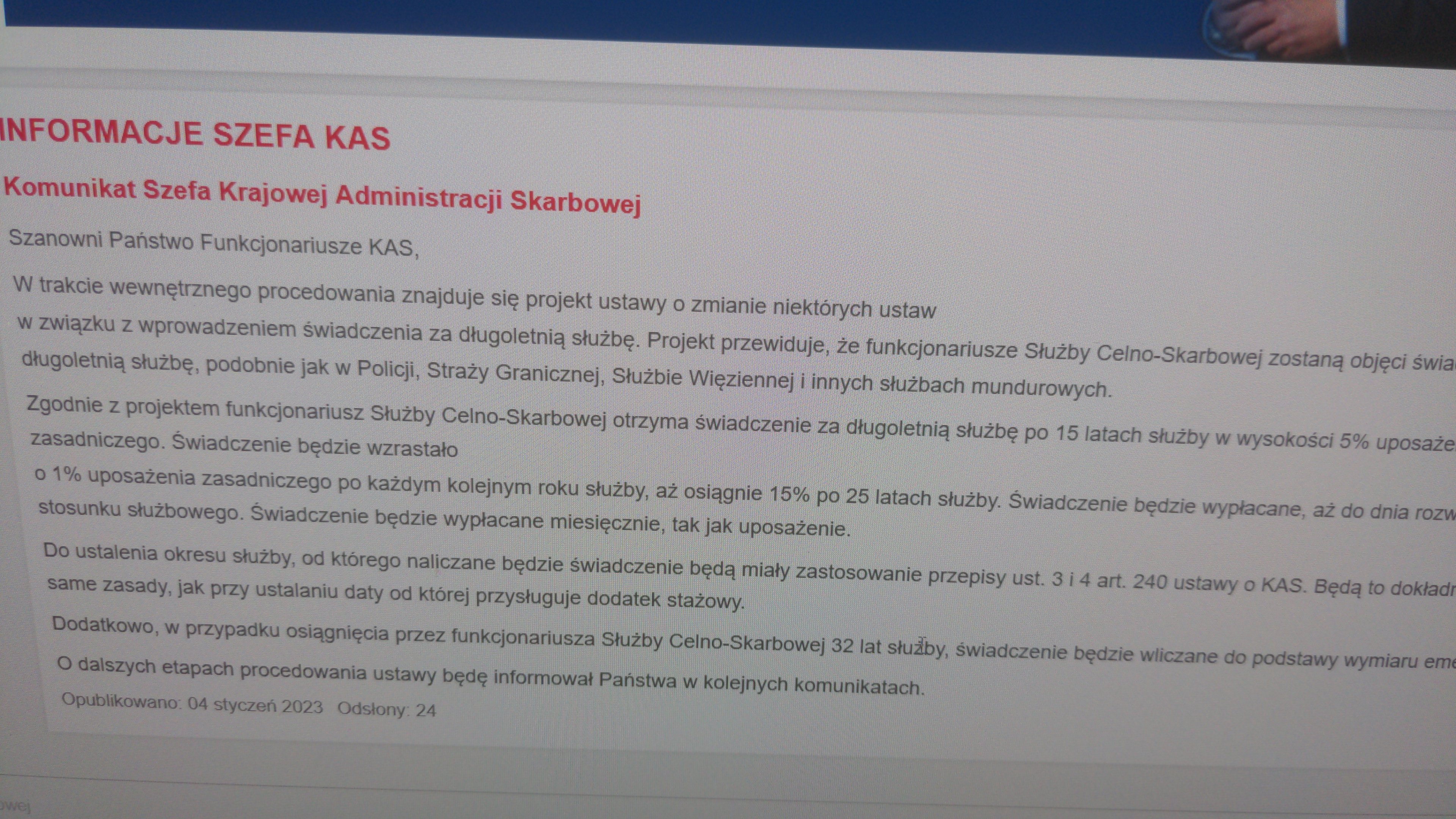 Gratuluję.Jestem pracownikiem us od 2010 r. /dlaczego to ważne? Bo siedzę w środku instytucji i znam ją przed reformą i po reformie. Po reformie jest o niebo lepiej, tak nigdy nie było. Wcześniej nikt nie słyszał o jakieś modernizacji, było cicho i spokojnie, a wszyscy z zazdrością patrzyli na UKS. O celnikach nikt nie mówił, to był inny świat.Po reformie czuje się ruch w interesie, a przygasłe wcześniej związki skarbowe muszą walczyć z Celnikami pl o „życie”. A jak walczą? Na skarbowcach stawiają tylko diagnozę, plują jadem i nienawidza wszystkich/mam wrażenie, że mają kompleks celnika, na Nie ignoruj KAS tylko hasła do boju i wyczekiwanie co zrobią celnicy. Żadnych działań.Tylko na tej stronie czytam o złożonych wnioskach, propozycjach zmian przepisów, zespołach, rozprawach w sądach. Te komunikaty mają treść.