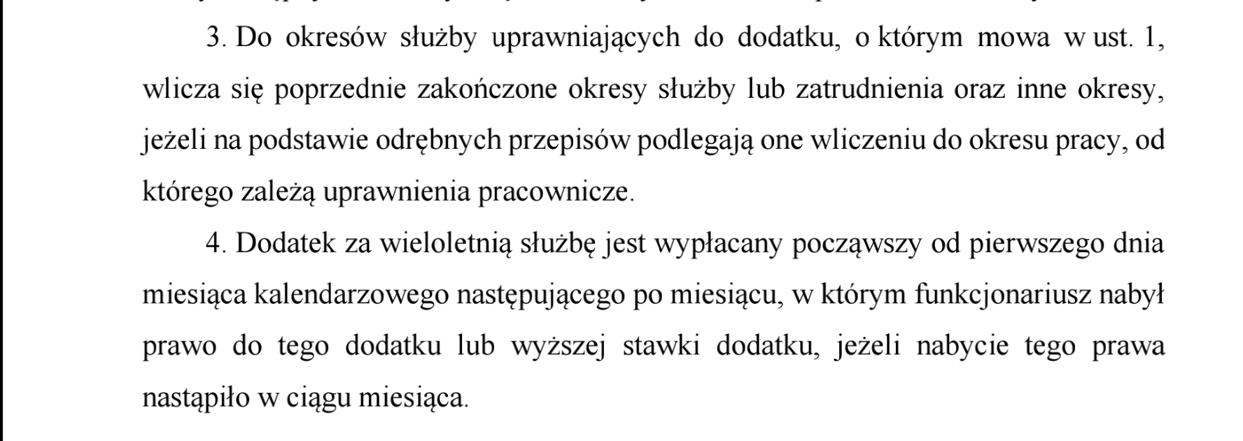 Dodatek ma być liczony tak jak dodatek za wieloletnią służbę